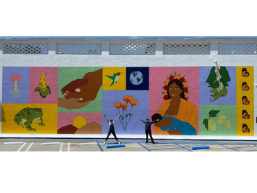 Located at Paseo Nuevo in Santa Barbara, “Nurture Our Mother” is a large-scale public mural measuring 70 feet wide and 40 feet tall, prominently featured behind the Museum of Contemporary Art Santa Barbara (MCASB). Designed by Adriana Arriaga and Claudia Borfiga in partnership with the museum for Earth Day 2022, the mural celebrates environmental stewardship, community, and the connection between people and the planet. Through bold color, symbolism, and collaborative artistry, “Nurture Our Mother” invites viewers to reflect on their role in protecting the Earth while enriching Santa Barbara’s vibrant public art scene.